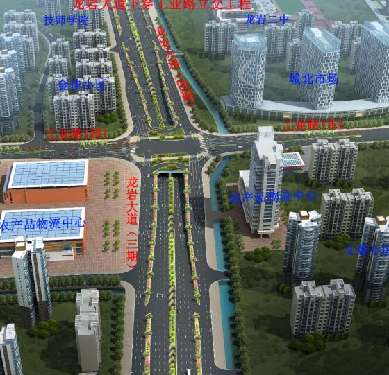 龍巖大道工業(yè)路下穿通道項目位于龍巖大道與工業(yè)路交叉口,為現(xiàn)狀龍巖大道三期道路上設(shè)置下穿通道,起始于規(guī)劃支路農(nóng)產(chǎn)品物流配送中心路口,終止于龍巖大道四期龍巖第一技師學(xué)院東側(cè),全長383米,其中框架涵長度80米,U型槽長度303米,地道凈寬2×13米,雙向六車道。主通道兩側(cè)設(shè)置兩道南北向人行地下通道,人行通道斷面型式:5×3.5米,主通道長124米,梯道長128米,總投資約2億元。